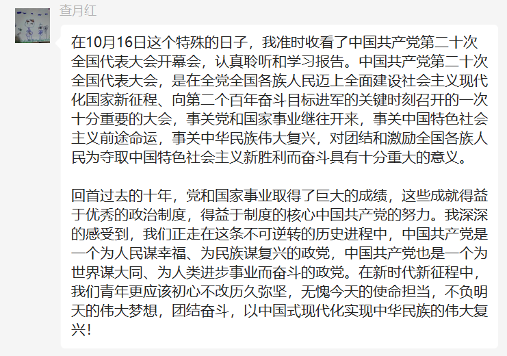 广大党员教师纷纷表示已经第一时间通过多种形式学习党的二十大精神,并将持续深入贯彻党的二十大精神。随后,每位党员教师结合自身本职工作、学习心得进行交流和讨论。(撰稿:王艳 审核:诸园)
