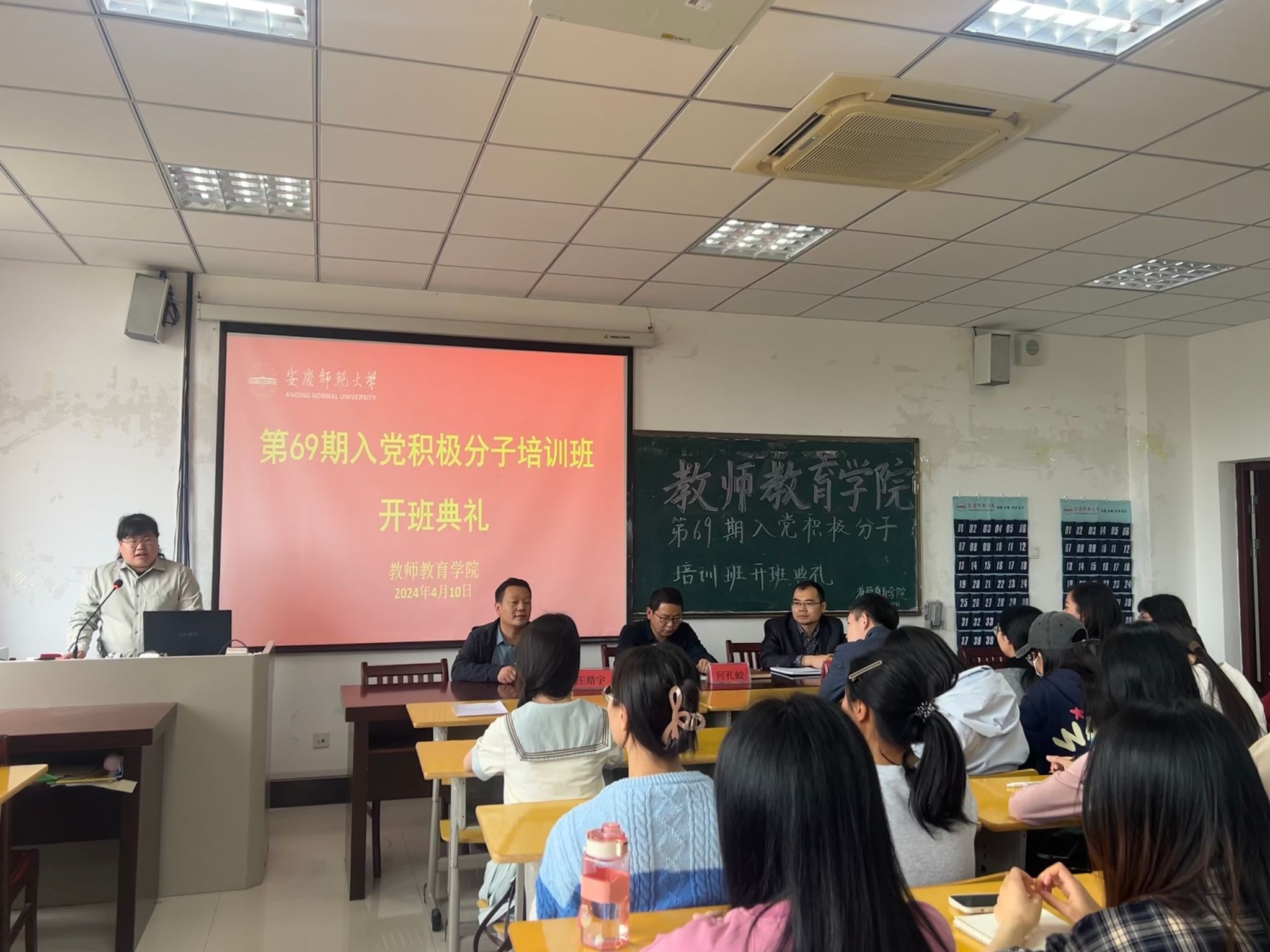 4月10日,taptap点点第69期入党积极分子培训班开班典礼在J305教室举行。学院党委书记何孔蛟,副院长陈效飞、王皓宇,各学生党支部书记及第69期入党积极分子参加,培训班班主任汪悦主持开班典礼。