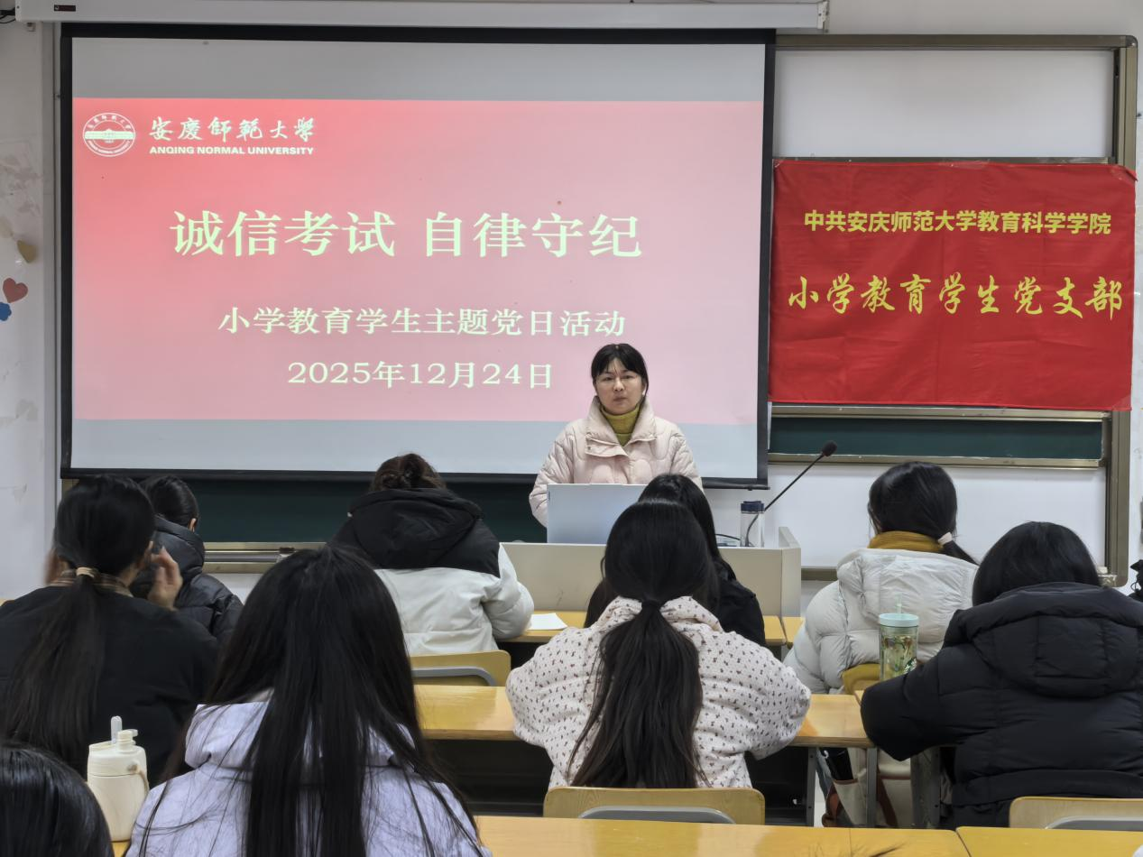 为强化学风建设、营造诚信考风,12月24日,taptap点点小学教育学生党支部在J221教室组织开展“诚信考试,自律守纪”主题党日活动。活动由党支部书记张文君主持,全体学生党员与入党积极分子参加。