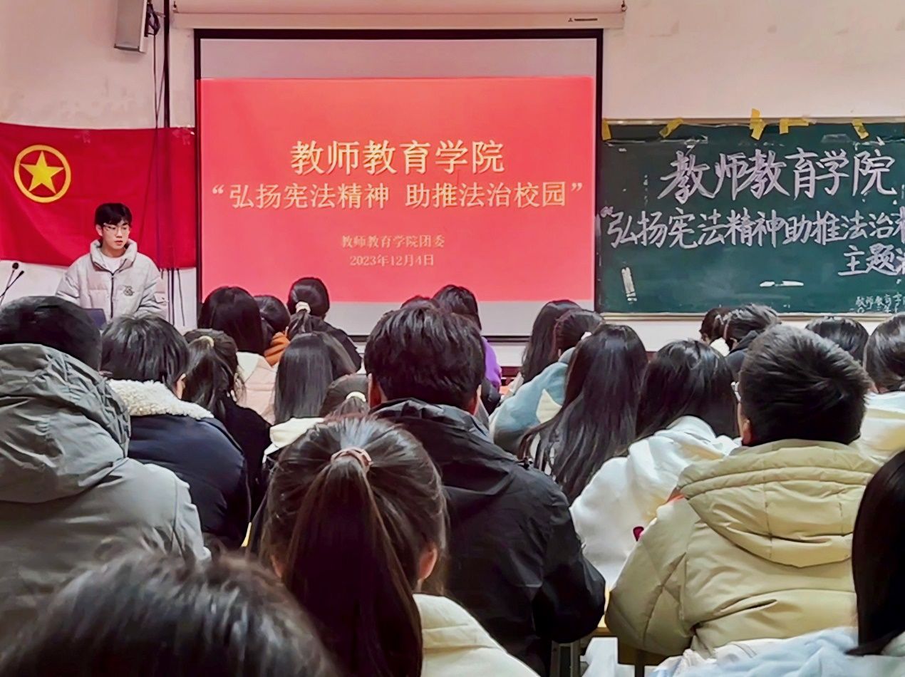 12月4日,taptap点点于J305教室开展“弘扬宪法精神,助推法治校园”主题活动。院团委实践委员叶伊林担任主持,学院八十余名学子到场参加。