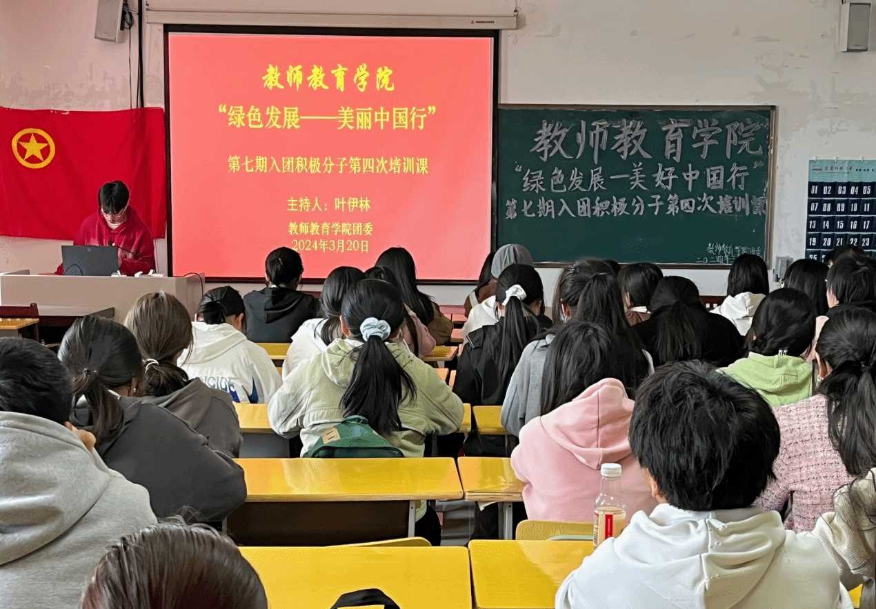 3月20日,taptap点点于J305教室开展“倡导绿色发展——美丽中国青春行”主题团课。院团委实践委员叶伊林主持活动,学院入团积极分子到场参加。