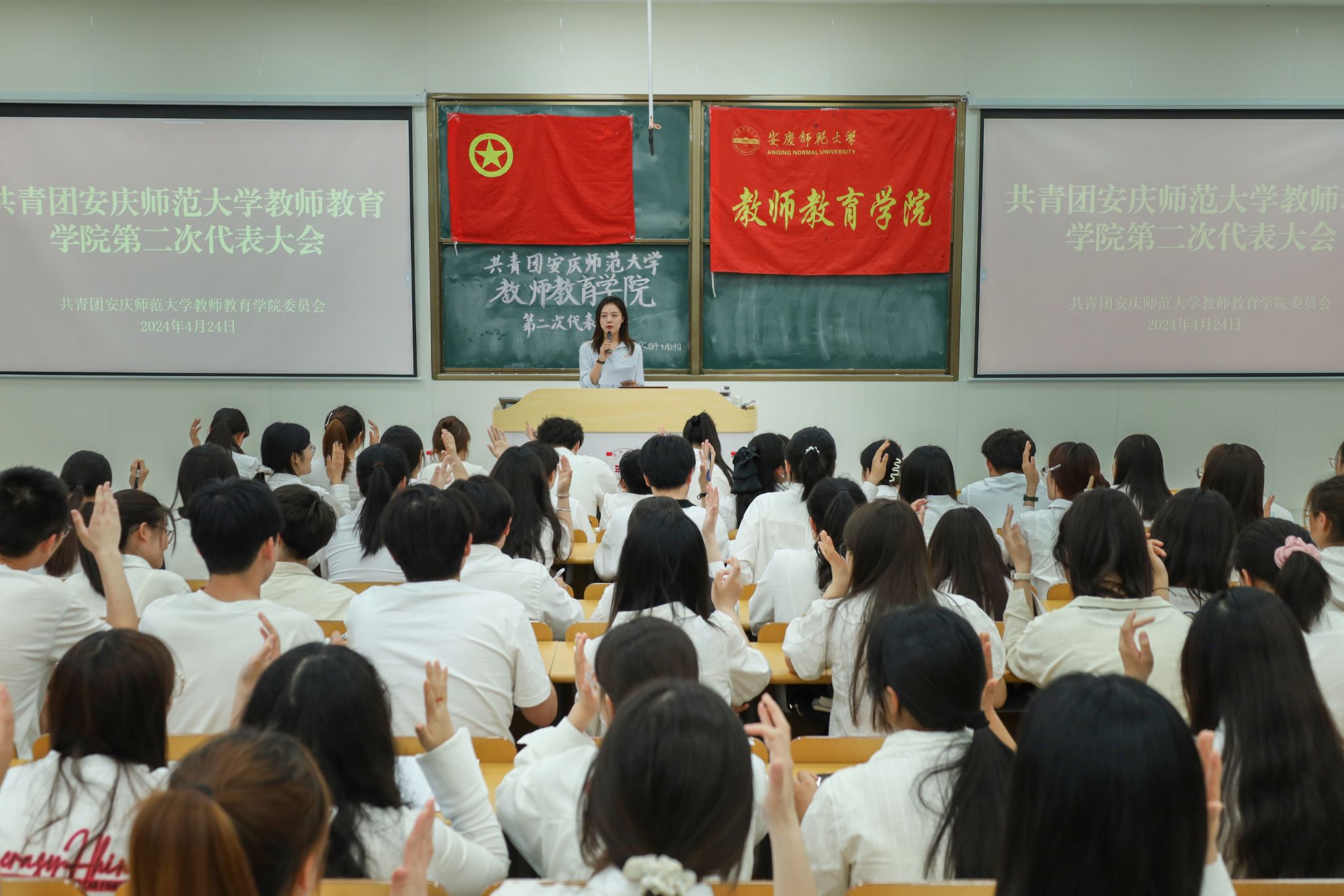 4月24日,共青团taptap点点官方网站taptap点点官方网站第二次代表大会文渊楼108教室召开。学院党委书记何孔蛟,党委委员、副院长诸园、王皓宇出席会议。学院全体专兼职辅导员及学院团代会120名代表参会。会议由院团委负责人姚强诚主持。