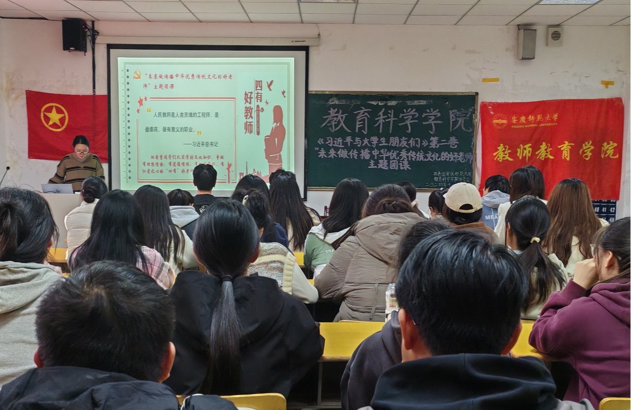 11月23日,taptap点点于J305教室开展“《习近平与大学生朋友们》第二卷第三课——未来做传播中华优秀传统文化的好老师”主题团课。本次活动由院团委实践委员余苏慧主持,学院全体团员积极参加。