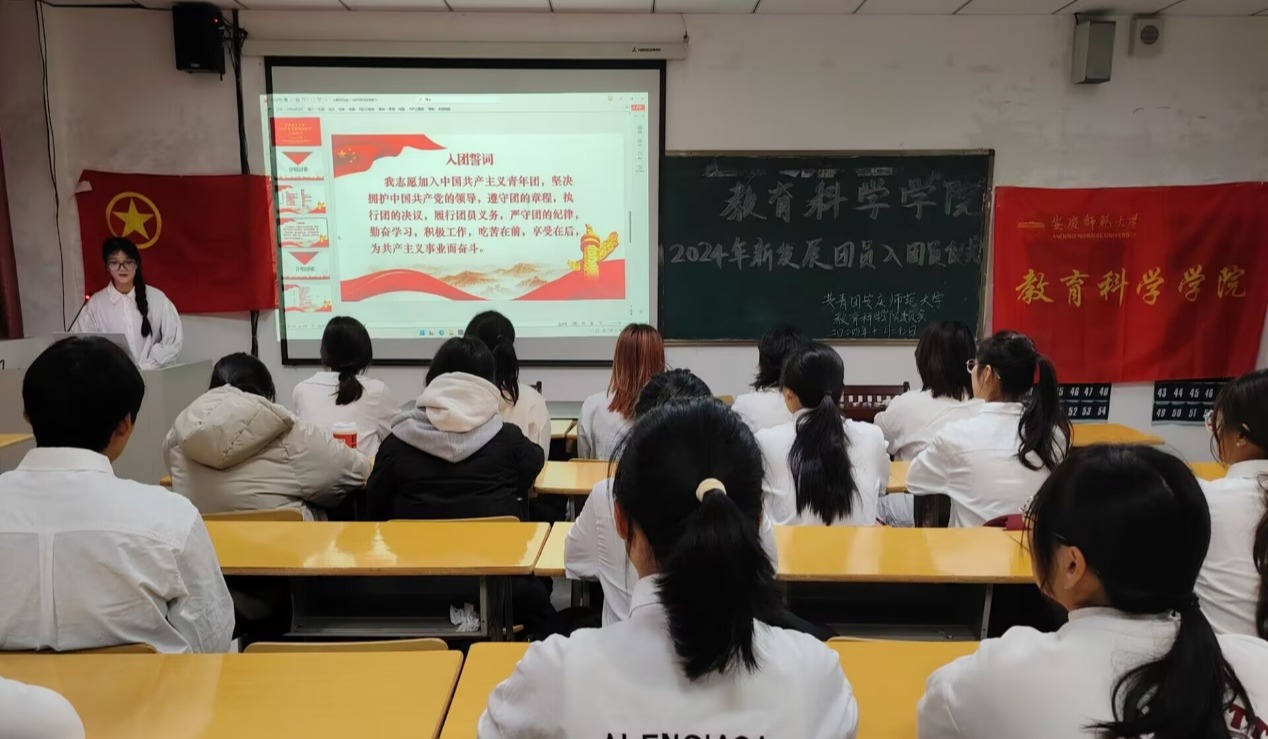 12月22日,taptap点点于J305教室举行2024年新发展团员入团仪式。活动由院团委实践委员余苏慧主持,院团委副书记姚强诚及全体新发展团员参会。