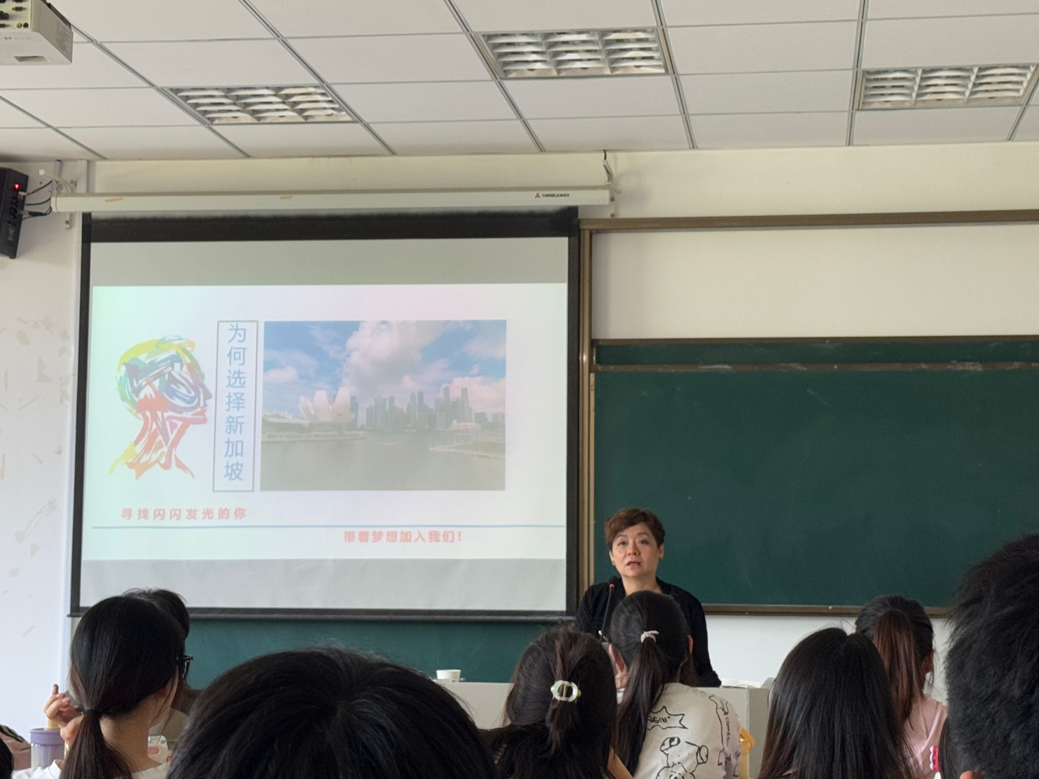 在学院期间,孙雯莉女士一行面向学前教育专业学生举行了专场招聘宣讲会,向学生们介绍了新加坡金日教育产业集团旗下的幼儿园及托儿所的办学特色、管理理念、工作环境及职业发展前景。通过丰富的案例分享和互动问答,学生们对新加坡的学前教育体系、职业发展路径及海外就业项目有了更深入的了解。宣讲会现场气氛热烈,学生们踊跃提问,孙雯莉女士耐心解答,并鼓励学生们拓宽视野,把握国际化发展机遇。