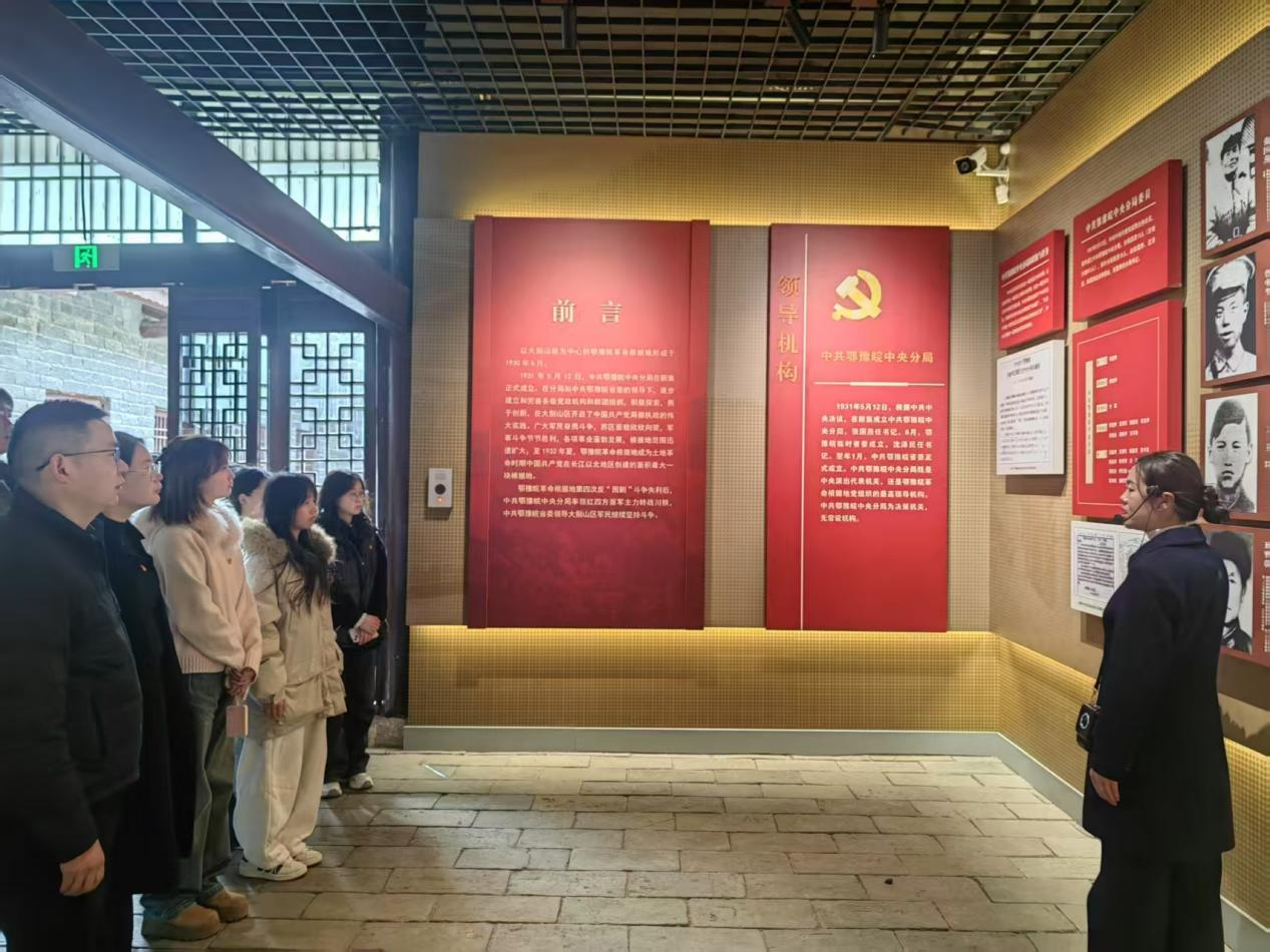 在鄂豫皖苏区首府革命博物馆,大家参观了主展馆、‌鄂豫皖苏区将帅馆‌、‌英雄山、大别山国防教育园等‌。在大量珍贵的革命历史文物和图片前,大家驻足凝视,切身感受到先烈们为了民族独立、人民解放视死如归的革命豪情,精神思想受到了洗礼,理想信念得到了升华。